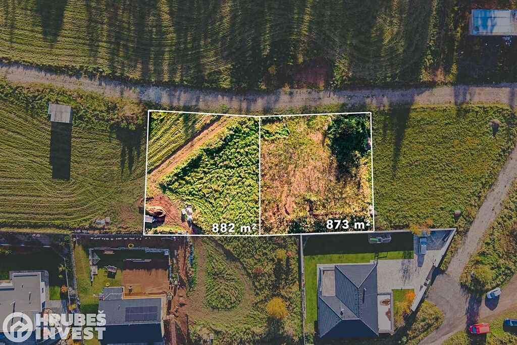 K prodeji jsou dvě samostatné stavební parcely o výměrách 873 m² a 882 m², které jsou dle územního plánu určeny pro bydlení v rodinných domech – městské a příměstské.