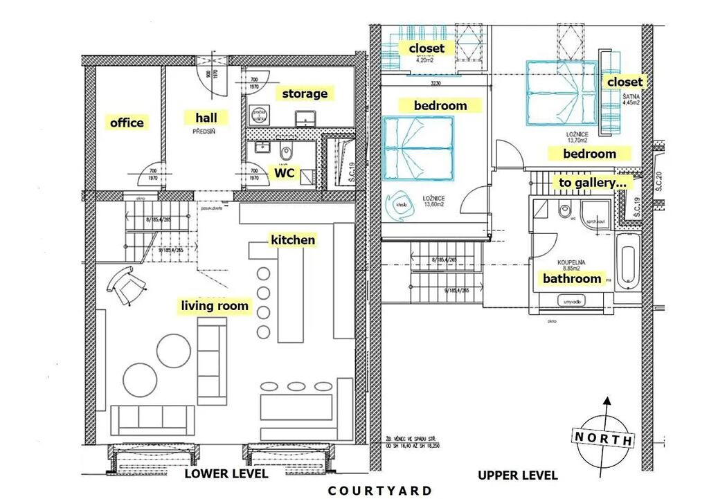 Interiér bytu je moderně zařízený s industriálními prvky velká okna, tři úrovně s galerií. Strop v obývacím pokoji je vysoký 8 metrů, v ložnicích je strop vysoký 5 metrů. Byt se nachází v přestavěné pivovarské budově a je plně zařízený. Ve spodním patře se nachází moderně zařízená kuchyň (indukční deska, trouba, lednice, mrazák, mikrovlnka, myčka), v kuchyni je specifickým prvkem bar s designovými sedadly z tramvaje Tatra T3 z 60.let., kuchyňský kout je spojen s prostorným obývacím pokojem, separátní toaleta a prádelna s pračkou a sušičkou. V horním patře je moderně zařízená koupelna (sprchový kout, vana, toaleta) a dvě samostatné ložnice s šatnou. Z obývacího pokoje vedou schody na designovou galerii. Byt je plně klimatizovaný a má přípojky pro vysokorychlostní internet/TV a satelitní TV.
