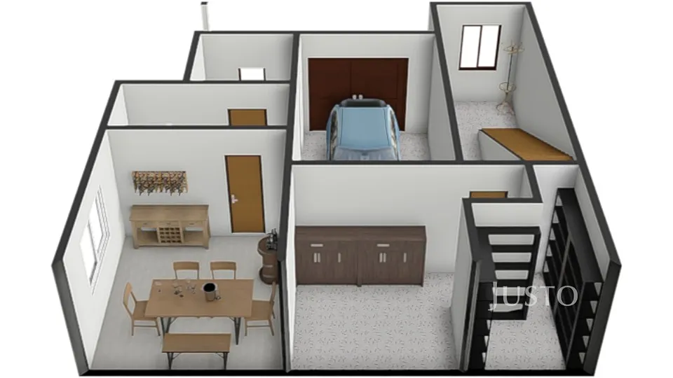 1. NP: garáž, sklad, vinárna, technická místnost s plynovým kotlem a dalšími úložnými prostory.