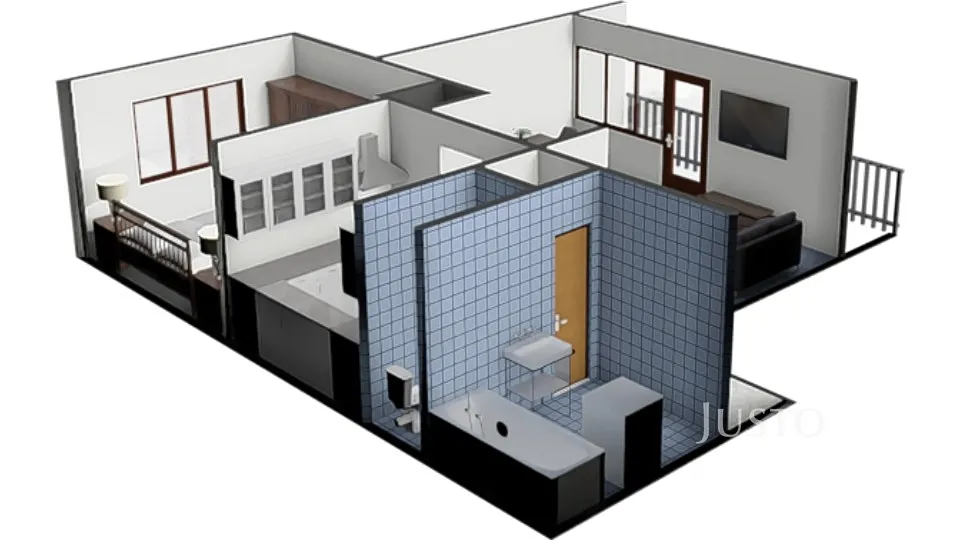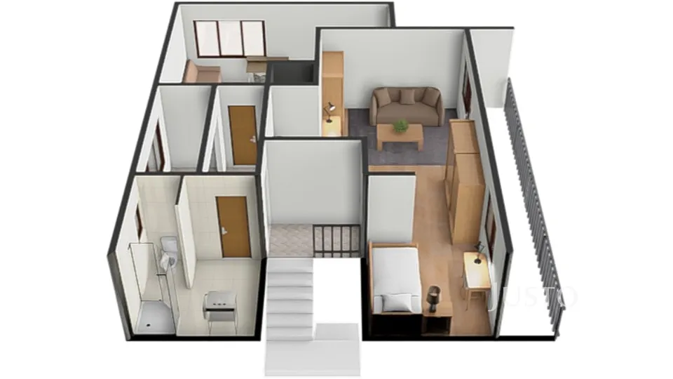 2. NP: kuchyně, ložnice, obývací pokoj, koupelna a WC.