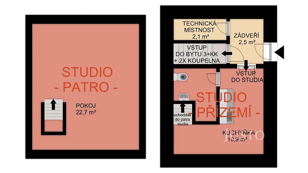 Mezonetové studio 1+1 (39 m²)- nyní je pronajato