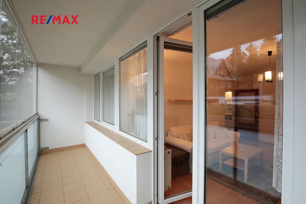 Dispozice bytu zahrnuje obývací pokoj s plně vybaveným kuchyňským koutem, samostatnou ložnici, koupelnu s toaletou a předsíň. Z obývacího pokoje je vstup na lodžii o velikosti 6 m², orientovanou na jihovýchod, která nabízí příjemné posezení a dostatek soukromí díky vzrostlým keřům oddělujícím ulici od lodžie. Lodžie tak působí klidně a útulně, ideálně pro ranní kávu či večerní odpočinek.
