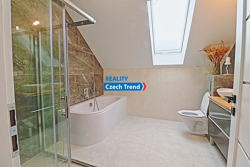 V bytě kuchyňská linka s vest. troubou, myčkou, indukční varné centrum a vest. mikrovlnná trouba. Koupelna se sprchovým koutem, vanou, 2 umyvadla a WC, V bytě videotelefon.