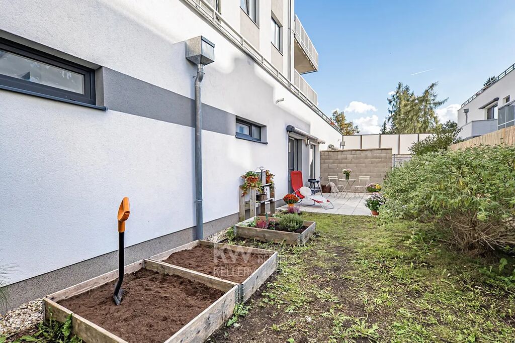 A právě ta je srdcem tohoto bytu – výsuvná pergola, voda a zásuvka Vám umožní vytvořit si dokonalé místo pro odpočinek, grilování s přáteli, práci na notebooku i letní večeře pod širým nebem. Díky rozloze se sem vejde jak posezení, tak i menší zahrádka nebo prostor pro domácí mazlíčky. Dále je v rohu kompostér a tři záhonky.