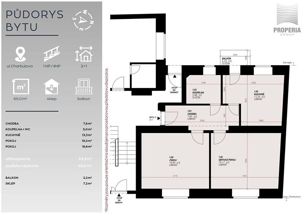 Nabízíme k prodeji byt v osobním vlastnictví o dispozici 2+1 a užitné ploše 63,9 m², který se nachází v prvním nadzemním podlaží čtyřpatrového kompletně revitalizovaného cihlového domu.