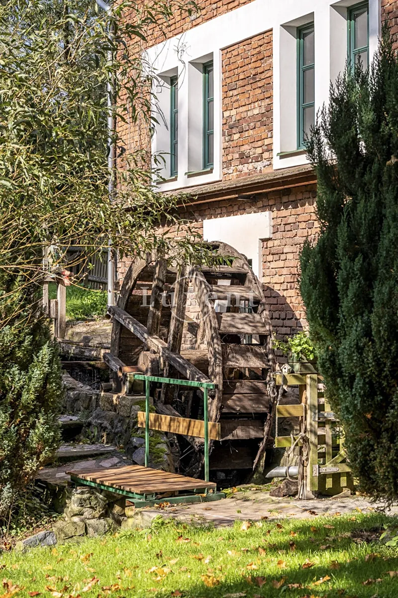 Dominantou celého souboru nemovitostí je usedlost historického vodního mlýna s podlahovou plochou 750 m², ležící na pozemku o velikosti 4,75 ha. Mlýn prošel citlivou rekonstrukcí s důrazem na zachování autentických prvků a zároveň poskytuje vysoký komfort moderního bydlení. Objekt nabízí nejen příjemné prostory pro soukromé užívání, ale také plně funkční restauraci a kvalitní zázemí pro ubytování hostů. K mlýnu přiléhá menší rybník a část Jevanského potoka. Původní vodní náhon zde vytváří příležitost k obnovení historického rybníka a k vybudování malé vodní elektrárny s výkonem až 12,5 kW. U hlavního objektu mlýna stojí stavení, které slouží jako zázemí pro areál – je zde sklad a vestavěná průmyslová chladicí jednotka, využívaná pro výkup zvěřiny a dozrávání masa. Za mlýnem je vytvořeno zázemí pro chov koní, nechybí ani jezdecká část s venkovní jízdárnou.