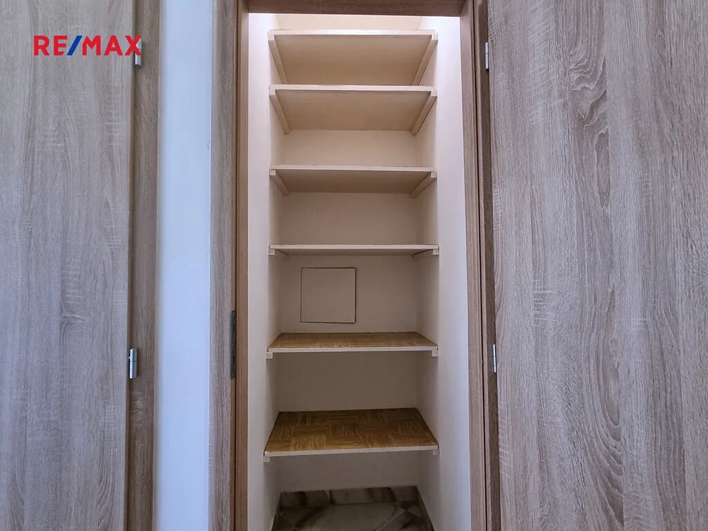 Součástí bytu jsou praktické úložné prostory – vestavěná skříň v ložnici, vestavěný botník a skříň na chodbě, spíž a sklep. K bytu náleží malý zasklený balkon.