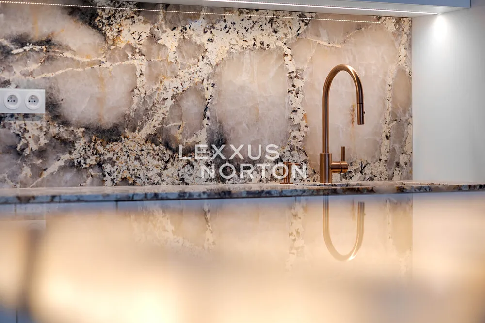 Vila má tři nadzemní podlaží a suterén. V přízemí se nachází velkorysý otevřený prostor obývacího pokoje, kuchyně a jídelny a o rozloze 60 m² s přímým vstupem na terasu a do zahrady. Kuchyň je vyrobena na míru a doplněna ostrůvkem s barovým pultem. Stejném podlaží je dále pokoj a samostatná toaleta. V prvním patře jsou umístěny tři prostorné ložnice a koupelna o velikosti 13,5 m² vybavená vanou i sprchovým koutem. Poslední patro tvoří hlavní ložnice s jedinečným soukromím a s nádherným nerušeným výhledem z balkonu, doplněná o vlastní koupelnu, šatnu a například pracovnu. V suterénu se nachází technické zázemí, prádelna a místnost s oknem pro využití podle individuálních potřeb nového majitele.