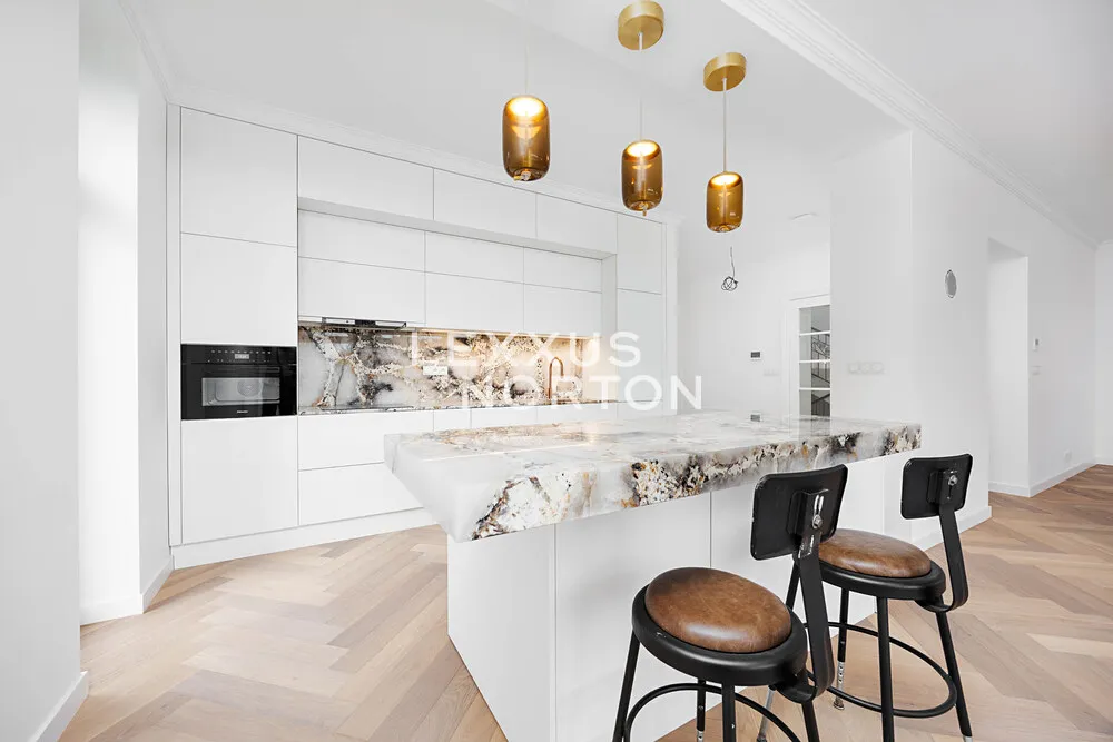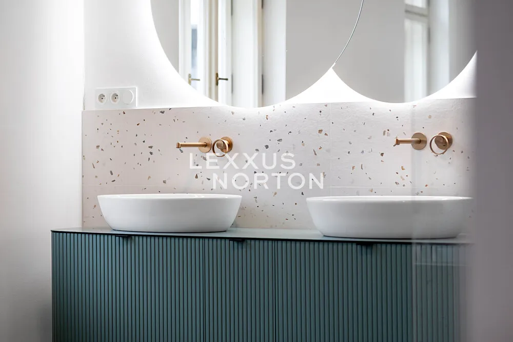 Vila byla dokončena s replikami původních vstupních dveří a dřevěných špaletových oken. Schodiště se stylovým zábradlím je obloženo portugalským merazzem a technologicky upraveným mramorem. Při přestavbě byly použity kvalitní materiály a nadčasové designové prvky. Ve všech podlažích je klimatizace a můžete si doplnit instalaci krbu. Charizmatická a zároveň komfortní vila odpovídá nejvyšším standardům současného bydlení.
