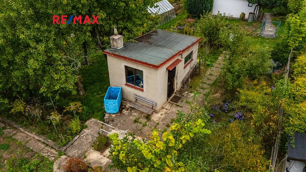 Na pozemku se nachází zděný zahradní domek (12 m²) s malým sklípkem pro uskladnění ovoce a zeleniny, praktický skleník a dřevěná kůlna na nářadí. Zahrada je udržovaná, osázená ovocnými stromy a nabízí dostatek prostoru pro odpočinek, grilování či dětské hry. Domek lze využít také jako hernu, dílnu nebo ateliér.