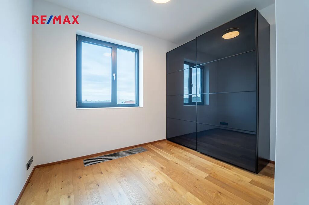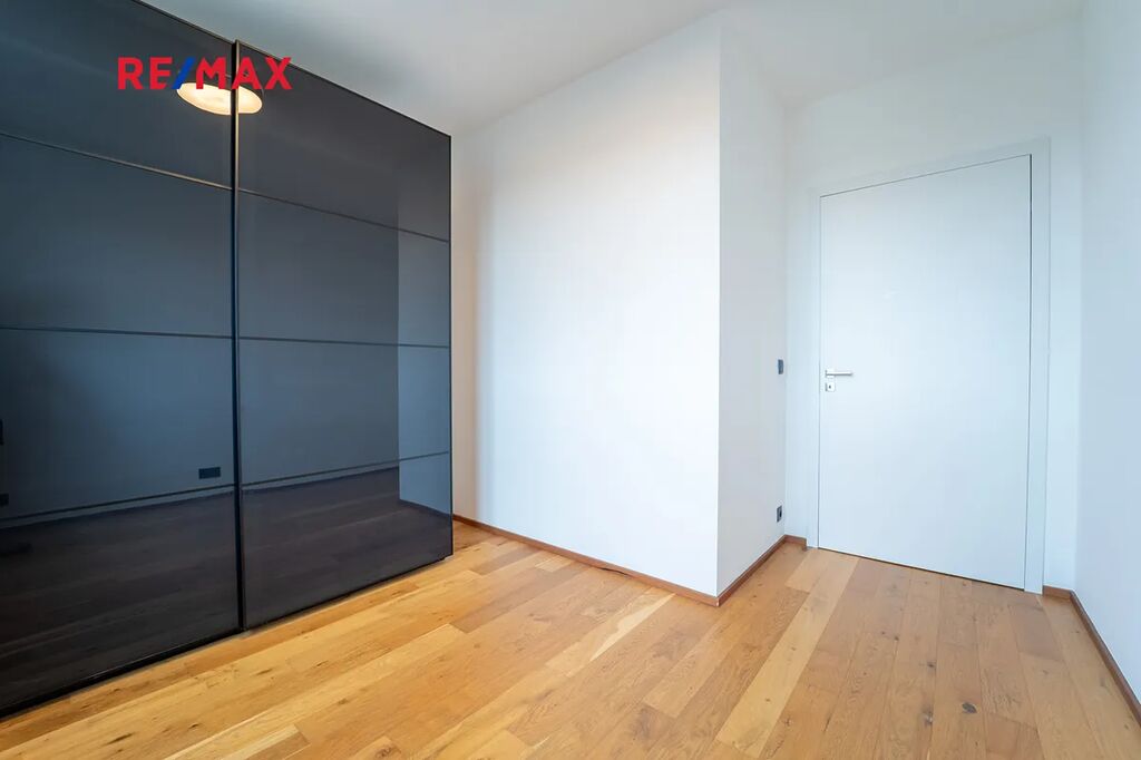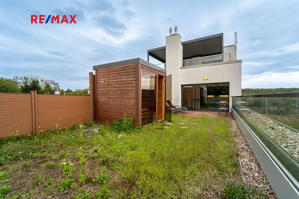 V bytě je instalována chytrá domácnost, předokenní žaluzie, klimatizace, na terase je k dispozici sauna.