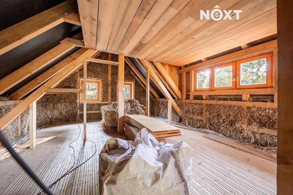 Dům je navržen jako diffuzně otevřený – zajišťuje ideální vlhkost, čistý vzduch a zdravé vnitřní prostředí. Vhodné pro alergiky, rodiny s dětmi i každého, kdo hledá ekologické a přirozené bydlení bez chemie. Vedlejší pozemek má vzrostlé stromy, studánku a je možné ho přikoupit, což případně uvítáte.
