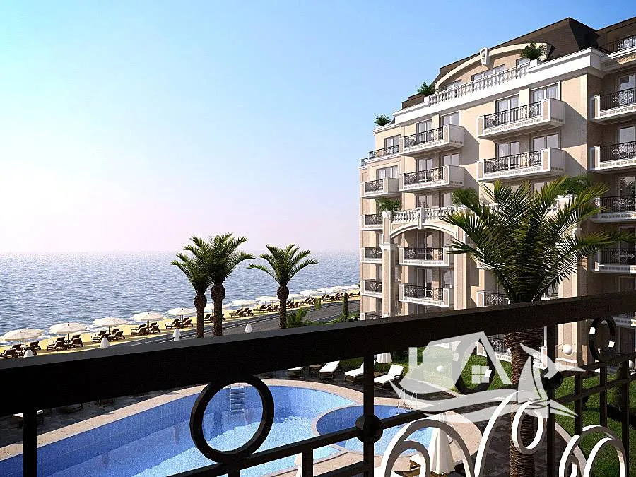 Tento apartmán o dispozici 2+kk a celkové ploše 60 m² se nachází ve 4. patře moderní rezidence jen pár kroků od pláže. Kombinuje pohodlí, klid a atmosféru místa, kde se moře setkává s horami. Z balkonu se otevírá úchvatný výhled na moře a bazén, který se leskne v odpoledním slunci.