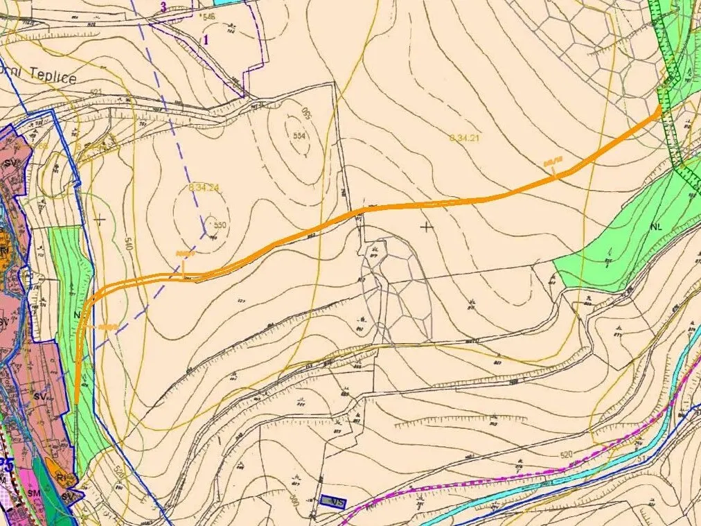 ostatní plocha (způsob využití ostatní komunikace) a orná půda. Horní Teplice je část města