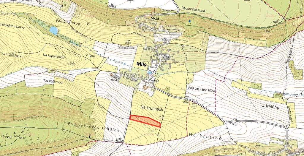 Nabízíme k prodeji ornou půdu o celkové výměře 11 497 m² nacházející se v katastrálním území Milý, okres Rakovník. Pozemek je evidován na LV 297 a je ve 100% vlastnictví. Jedná se o parcelu č. 216/11.