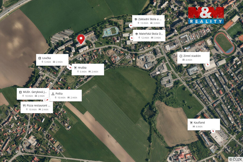 V okolí najdete dostatek zeleně, parkování přímo před domem a veškerou občanskou vybavenost v dosahu – dětská hřiště, školy, školky, obchody, zastávky MHD i sportoviště. Lokalita zároveň nabízí výbornou dopravní dostupnost do centra města i okolních obcí.