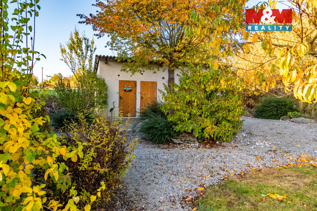 V zadní části pozemku najdete samostatný dům pro hosty 2+1 s krytou terasou, také kompletně po rekonstrukci, s vlastním vjezdem. Navazuje prostorná dílna pro kutila, kde je i umístěn akumulátor k solárním panelům. Na pozemku jsou provedeny odborné zahradnické úpravy, okrasné skalky, ovocné stromy. V objektu se dále nachází původní dva sklady, využívané k uskladnění např. zahradnické techniky a prostorná garáž. PENB je momentálně ve zpracování.