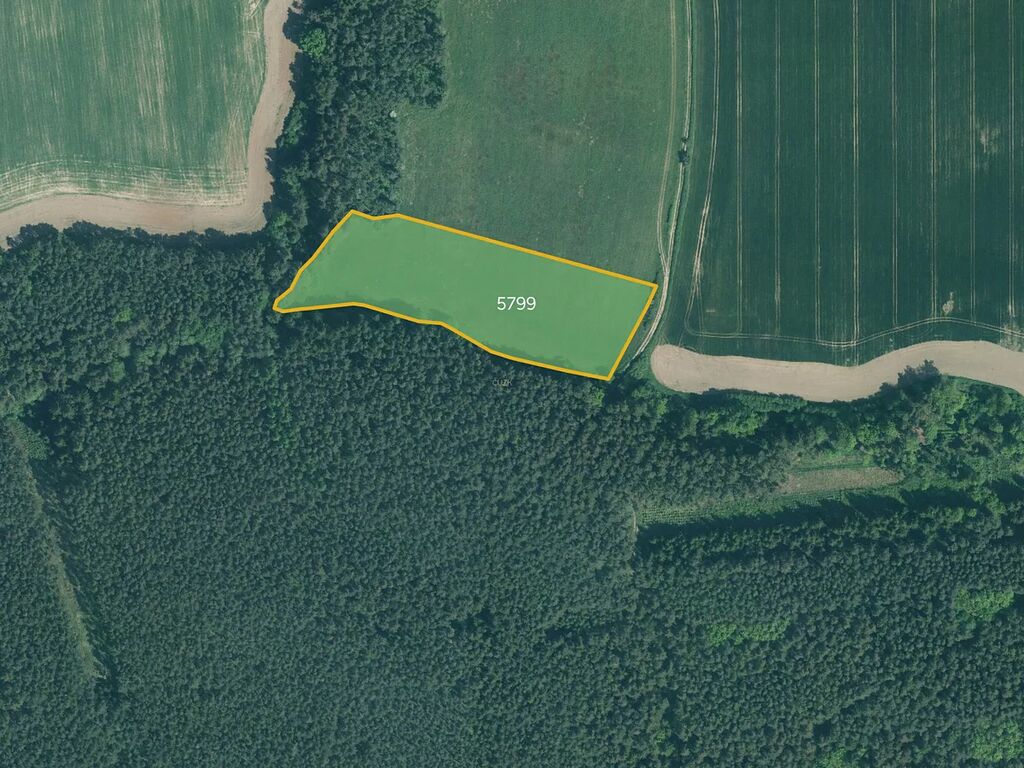Pozemek je zapsán na LV 55 pod číslem 5799. Jeho celková výměra je 12 656 m² a majitel zde prodává 9 492 m². Užíván je jako trvale travní porost.