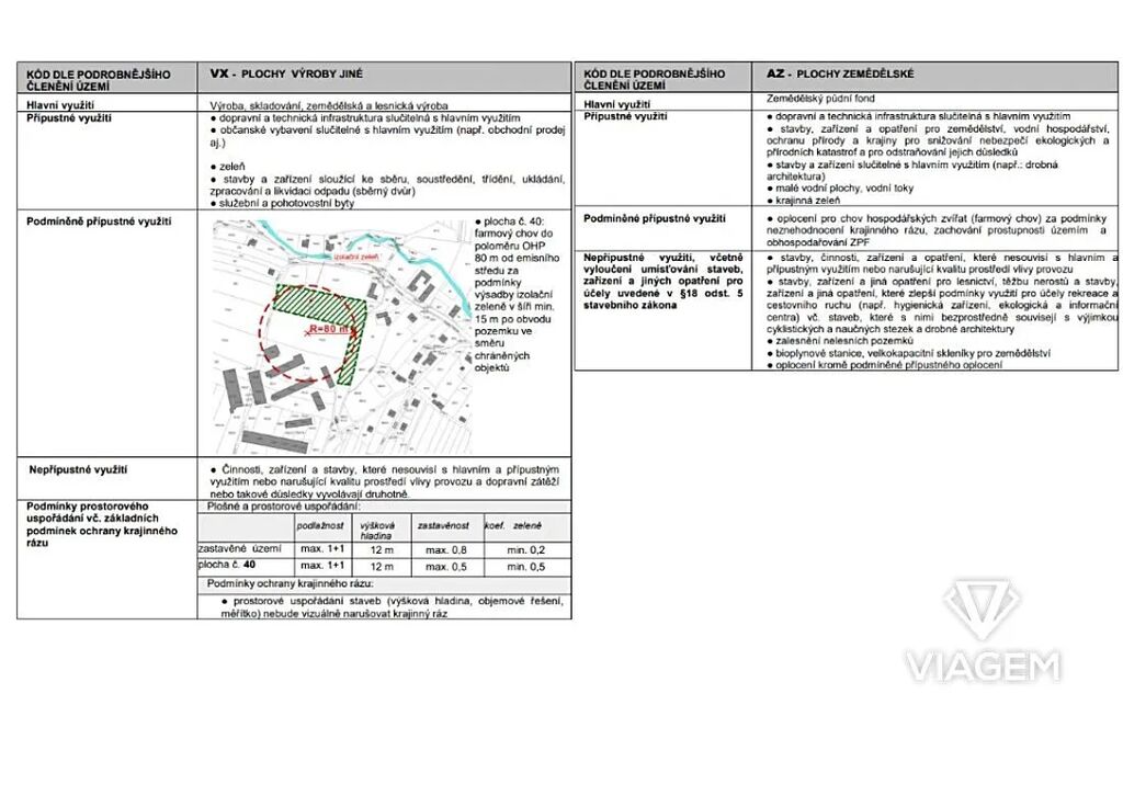 Možnosti využití pozemku jsou dle územního plánu pro výrobní a skladovací plochy či jiné komerční účely. Parcela nabízí příležitost ideálního místa pro budoucí firemní zázemí. Přístup k pozemku je zajištěn přímo z hlavní silnice.