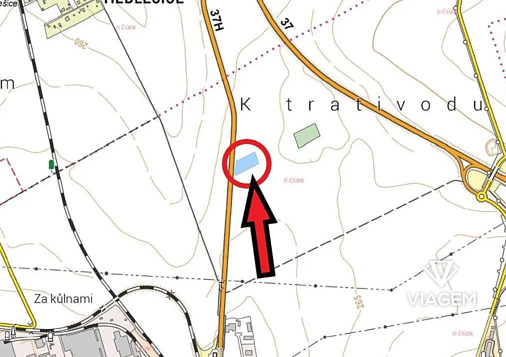 Pozemek se nachází blízko pozemní komunikace, je tedy vhodný pro umístění billboardu, či jiných reklamních ploch.