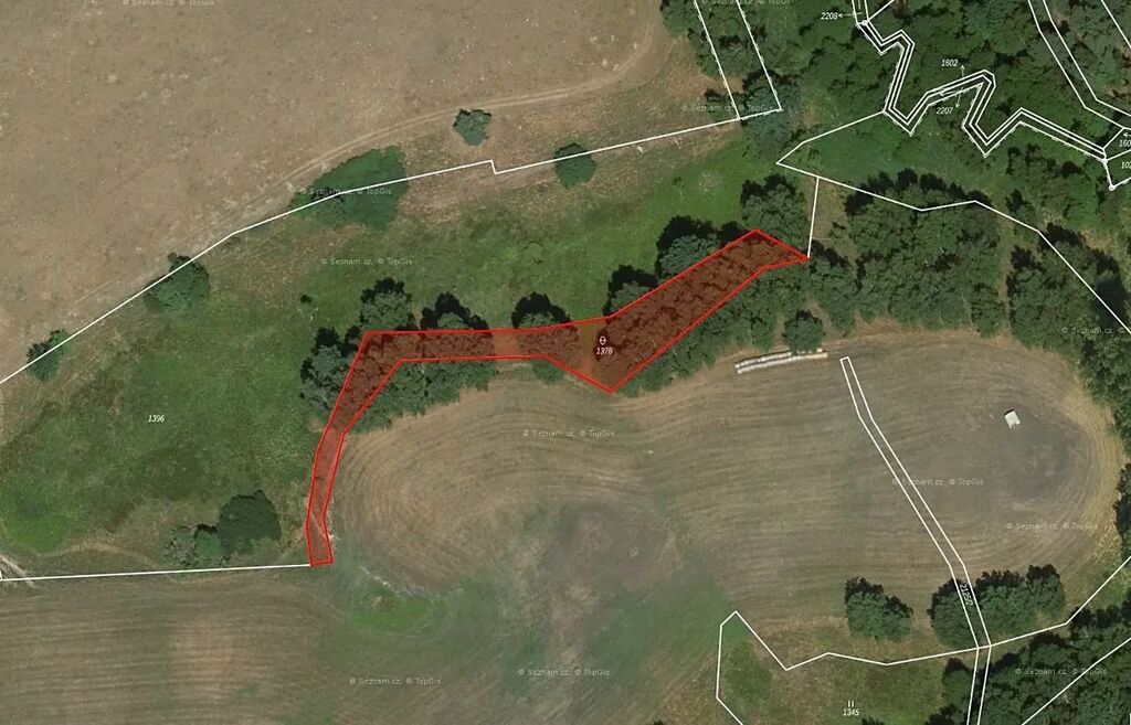 Tento pozemek je zapsán na LV 529 s parcelním číslem 1376 o celkové výměře 1924 m².