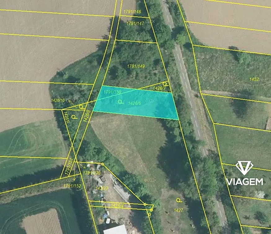 Tyto pozemky jsou zapsány na LV 2837 s parcelními čísly 1426/6, 1791/150.