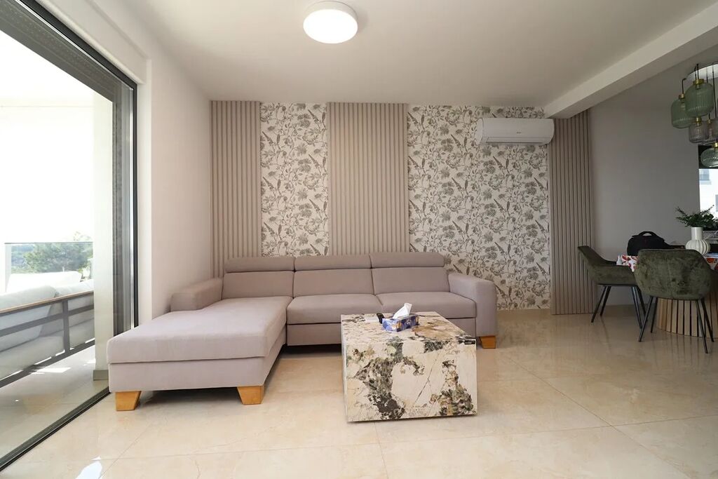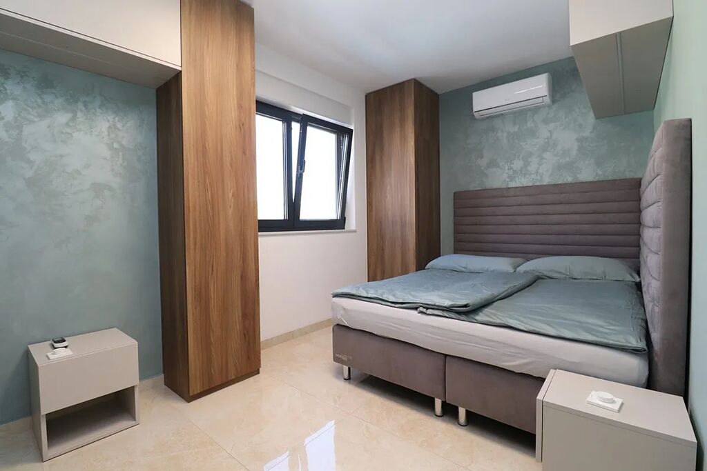 Apartmán o ploše 102,60 m2 je umístěný ve druhém patře moderní bytové budovy a sestává z chodby, dvou ložnic, z nichž jedna má vlastní koupelnu a přístup na terasu, další koupelny, samostatné toalety a prostorného obývacího pokoje s kuchyní a jídelnou, ze kterého je přístup na velkou terasu vybavenou vířivkou. Apartmán je klimatizovaný, v koupelnách je podlahové vytápění, moskytiéry na všech oknech, plně zařízený a veškerý nábytek a vybavení jsou již zahrnuty v ceně. K apartmánu náleží 2 parkovací stání a dvorek o rozloze 44,50 m2 což nemovitosti dodává ještě větší hodnotu.