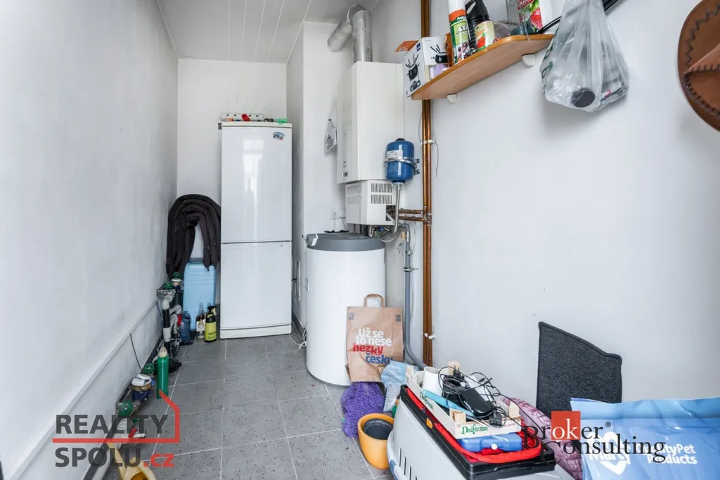 Vytápění a ohřev vody zajišťuje plynový kotel, ale díky přítomnému komínu je zde možnost instalace krbu pro vytvoření příjemné atmosféry.