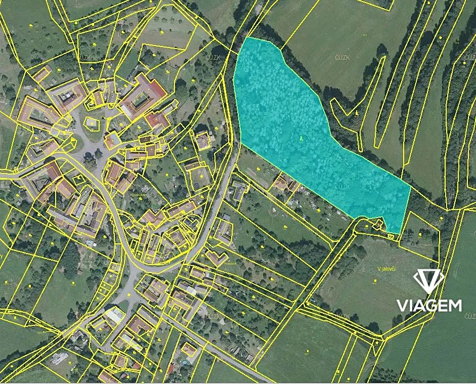 Pozemek zapsaný na LV 68, podíl 1/16 o výměře 982 m2.
