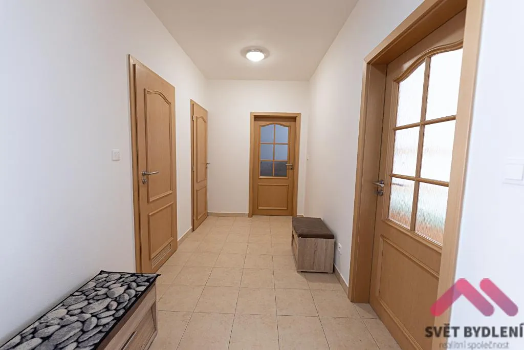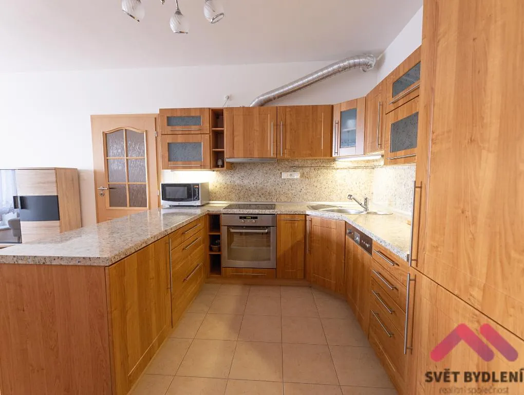 krásný byt 3+kk, 74m2 + balkon s hezkým výhledem, garáž, klidná lokalita, P-10 Dolní Měcholupy ul. V Osikách . Ve výhradním zastoupení majitele nabízíme k pronájmu krásný byt 3+kk, který se nachází v 2.patře novostaby nízkého bytového domu (pouze 2.patra) v klidné loklatě Dolních Měcholup. Byt je vybaven nábytkem viz. foto (po dohodě je možné některý nábytek odstěhovat) a dále je k dispozici kuchyňská linka s vestavěnými spotřebiči (vaná deska, horkovzdušná trouba, myčka, lednička s mrazákem) v koupelně se nachází pračka. K bytu náleží parkovací stání umístěné v suterénu domu a sklep.