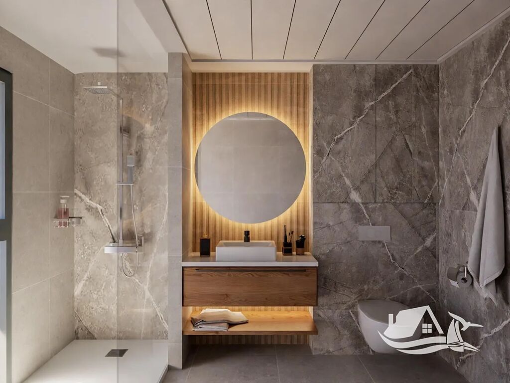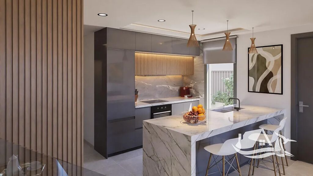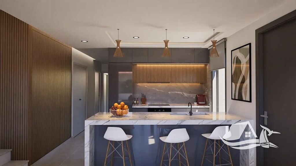 Každá vila má obytnou plochu 128 m² a je postavena na pozemku o rozloze 228 m². Dispozice zahrnuje tři prostorné ložnice, tři moderní koupelny a světlý otevřený obývací prostor s plně vybavenou kuchyní, která je dodávána se spotřebiči. Koupelny mají elegantní koupelnový nábytek s umyvadlem a osvětlením, zatímco ložnice jsou vybaveny vestavěnými skříněmi s úložnými systémy.