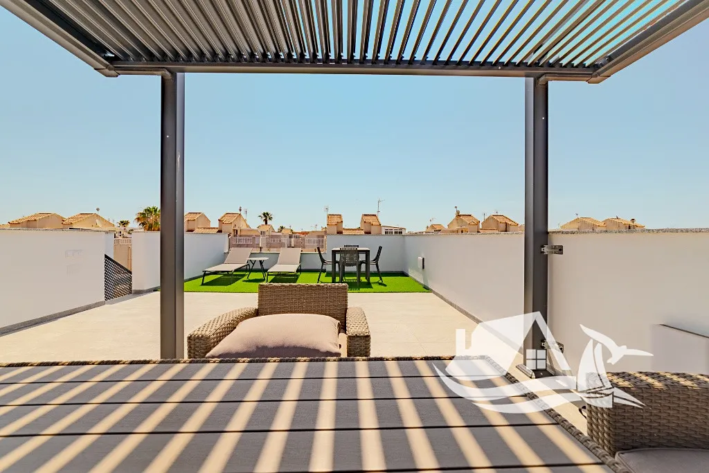Stylová novostavba vily v Torrevieji nabízí ideální kombinaci moderní architektury, pohodlí a středomořského klidu. Tato klíčová novostavba se nachází v rezidenční oblasti El Hondo, jen 4 km od písečných pláží, a je připravena k okamžitému nastěhování. Dům o obytné ploše 105 m² stojí na pozemku o velikosti 116 m² a byl postaven z kvalitních materiálů s důrazem na detail i energetickou efektivitu.