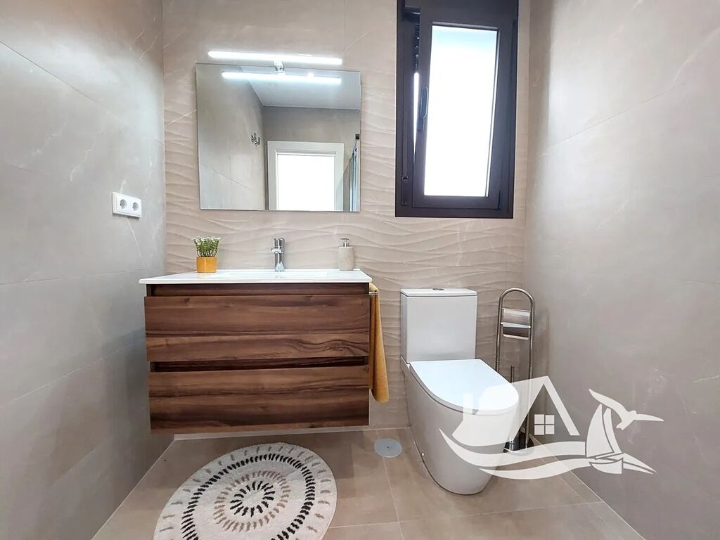 Na dvou podlažích se rozkládají tři prostorné ložnice a tři elegantní koupelny. Hlavní ložnice v horním patře má vlastní koupelnu, šatnu a přímý vstup na terasu s výhledem na bazén. Jedna z ložnic se nachází v přízemí, což zvyšuje pohodlí při každodenním užívání. Na střeše domu se rozprostírá solárium o rozloze přes 30 m², které nabízí naprosté soukromí a ideální místo pro odpočinek pod španělským sluncem.