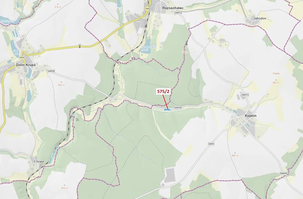 Lesní pozemek o výměře 1631 m2, parcelní číslo 575/2, podíl 1/1, katastrální území Kojetín u Havlíčkova Brodu, obec Kojetín, obec s rozšířenou působností Havlíčkův Brod, okres Havlíčkův Brod, Kraj Vysočina. Po těžbě.
