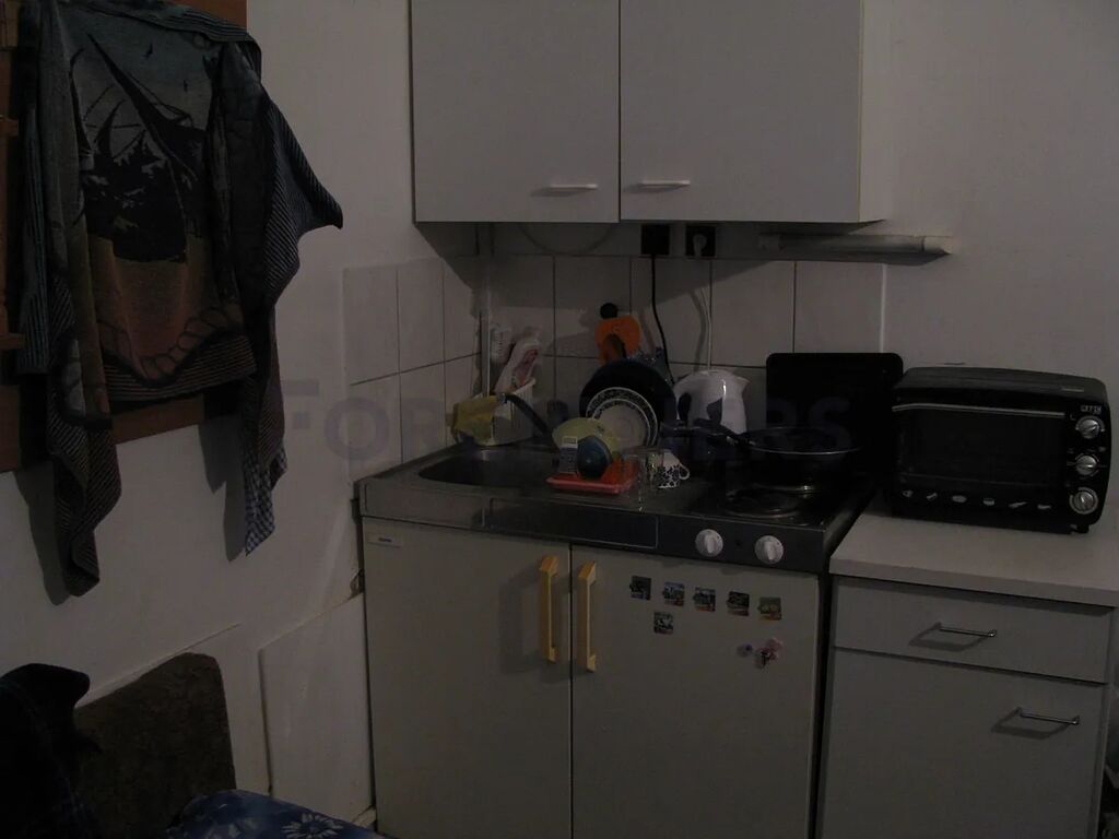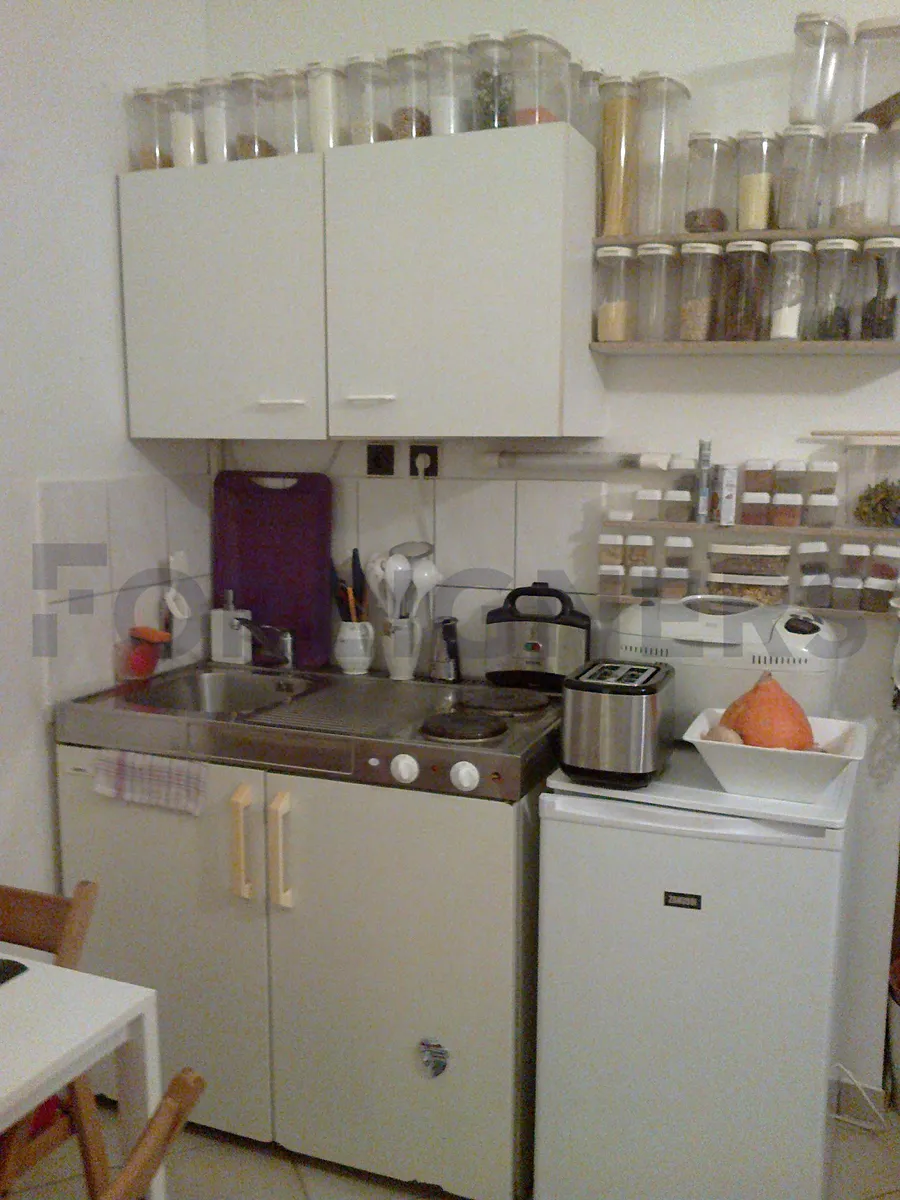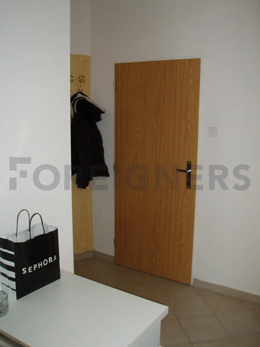 Jednotka je částečně zařízená. K dispozici je malý kuchyňský kout vybavený lednicí a dvouplotýnkovým vařičem. Součástí vybavení jsou také pračka, šatní skříň a postel.