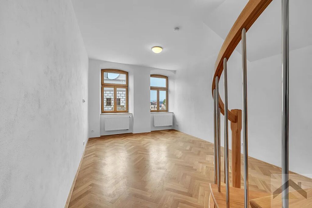 Od 1. prosince je k dlouhodobému pronájmu připraven mezonetový byt v centru Lanškrouna. Byt je situován do 2. a 3. nadzemního podlaží zrekonstruovaného domu na nám. J. M. Marků. Spodní patro nabízí výhled do náměstí. Byt je vybaven kuchyňskou linkou (trouba, sklokeramická deska), koupelna vanou a toaletou. Z obývacího pokoje je dřevěným schodištěm zajištěn vstup do dvou menších pokojů. Nájemné je uvedeno bez spotřebovaných energií. Při počtu 4 osob užívajících byt činí zálohy na energie 3.400,- Kč (teplo 1.800,- Kč, vodné 350,- Kč / osoba, elektřina společných prostor 200,- Kč). Odběr elektřiny v bytě si zajišťuje a hradí nájemce sám. V domě je společná plynová kotelna. Kauce je stanovena ve výši 2 měsíčních nájmů. Provize realitní kanceláři činí 11.000,- Kč. Byt je vhodný pro maximálně 4-člennou rodinu, nekuřáky, bez zvířat. Majitel si vyhrazuje právo vybrat si nájemce dle vlastních kritérií.