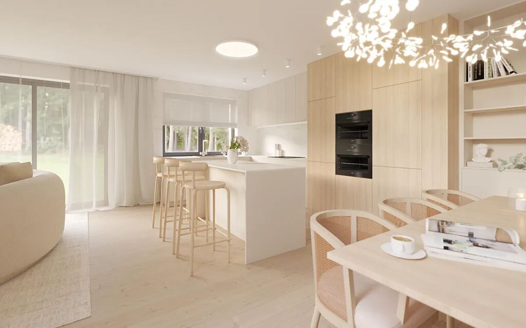 V patře se nachází tři ložnice, velkorysá koupelna s vanou i sprchovým koutem, samostatné WC a praktická šatna. Vysoký standard vybavení obnáší dřevěné podlahy, přípravu na chytrou domácnost a další prémiové prvky, které zajišťují pohodlné a bezstarostné bydlení.