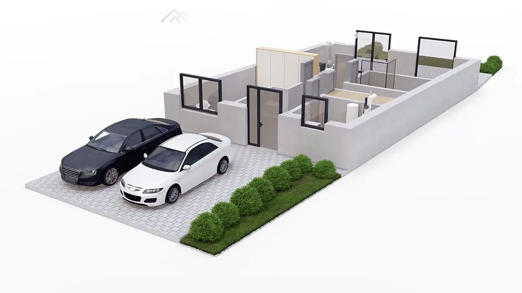 Dům je rozdělen na dvě podlaží s promyšleným uspořádáním, které poskytuje maximální komfort a funkčnost. Přízemí nabízí prostorný obývací pokoj s jídelnou a přípravou na designovou kuchyni. Z obývací části je přímý vstup na terasu a zahradu, která je orientována do klidného vnitrobloku a nabízí ideální místo pro relaxaci. Součástí přízemí domu je také pracovna s výhledem do ulice, vstupní část, technická místnost a koupelna se sprchovým koutem a toaletou. V prvním patře se nachází hlavní ložnice a další tři velkorysé ložnice s dostatkem přirozeného světla a samostatná koupelna se sprchovým koutem, vanou, dvěma umyvadly a toaletou. Toto řešení rozložení přináší vyšší komfort a klid, zejména pro větší rodiny. Dominantním prvkem interiéru je elegantní schodiště s osvětlením , které umocňuje pocit moderního designu. Velkým přínosem je výsuvné schodiště v prvním patře, které vede na velkolepý půdní prostor s 60 m2 a výškou až 1,75m. Nedílnou součástí je prostorné parkování pro dva vozy.
