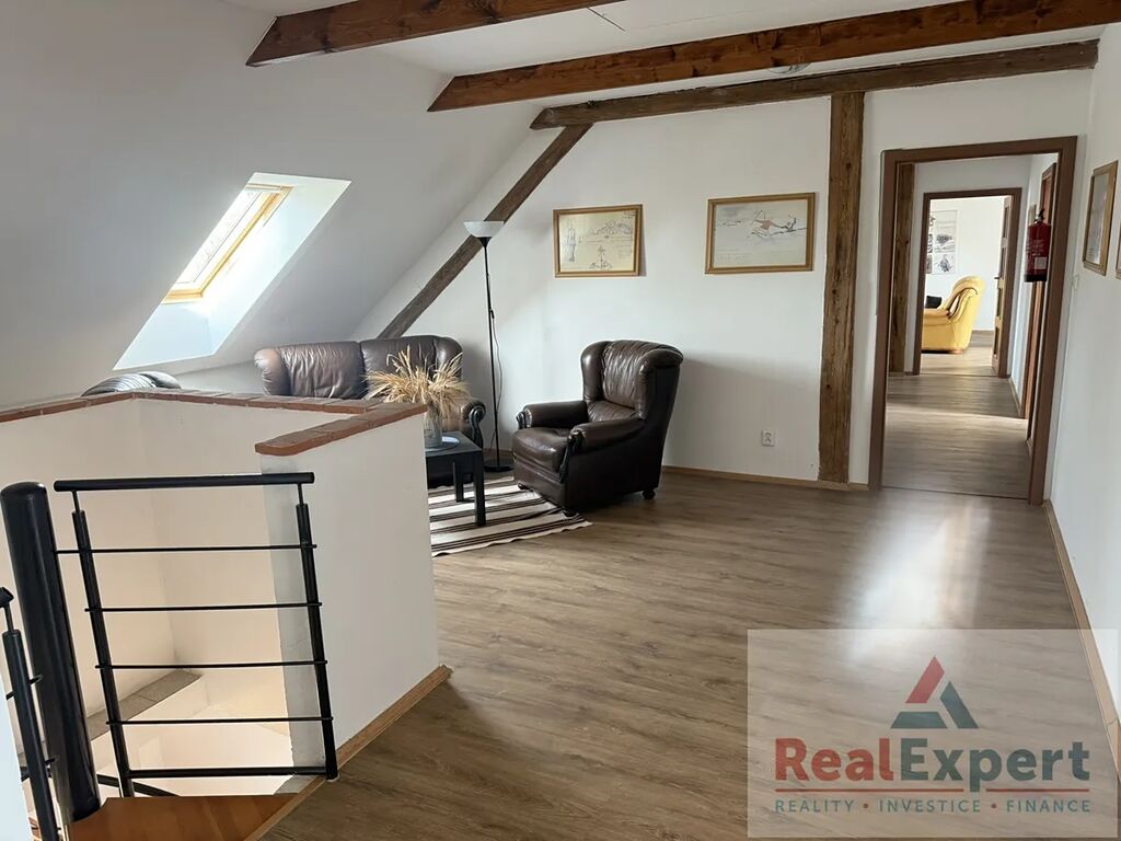 Vedlejší patrová stavba (30 × 10 m, užitná plocha cca 500 m2) má v přízemí technické zázemí, dílny, garáže a sklad. V patře jsou tři apartmány (3+kk, 2+kk, Atelier).