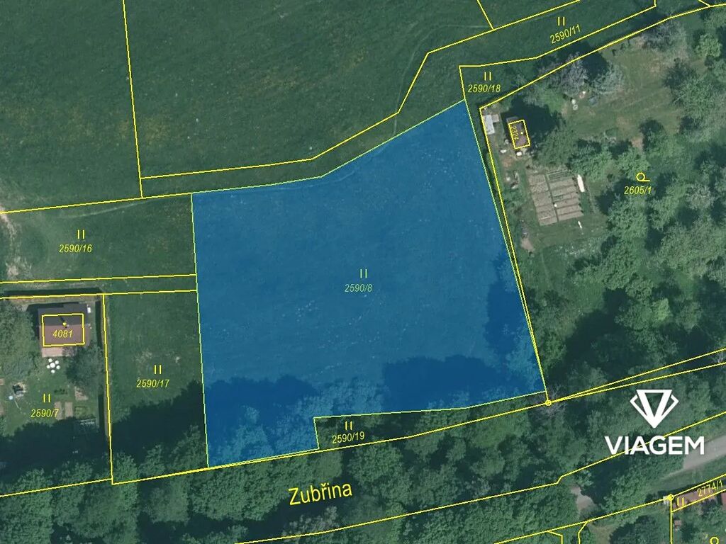 Tento pozemek je zapsán na LV 3971 s parcelním číslem 2590/8 o celkové výměře 3430 m².
