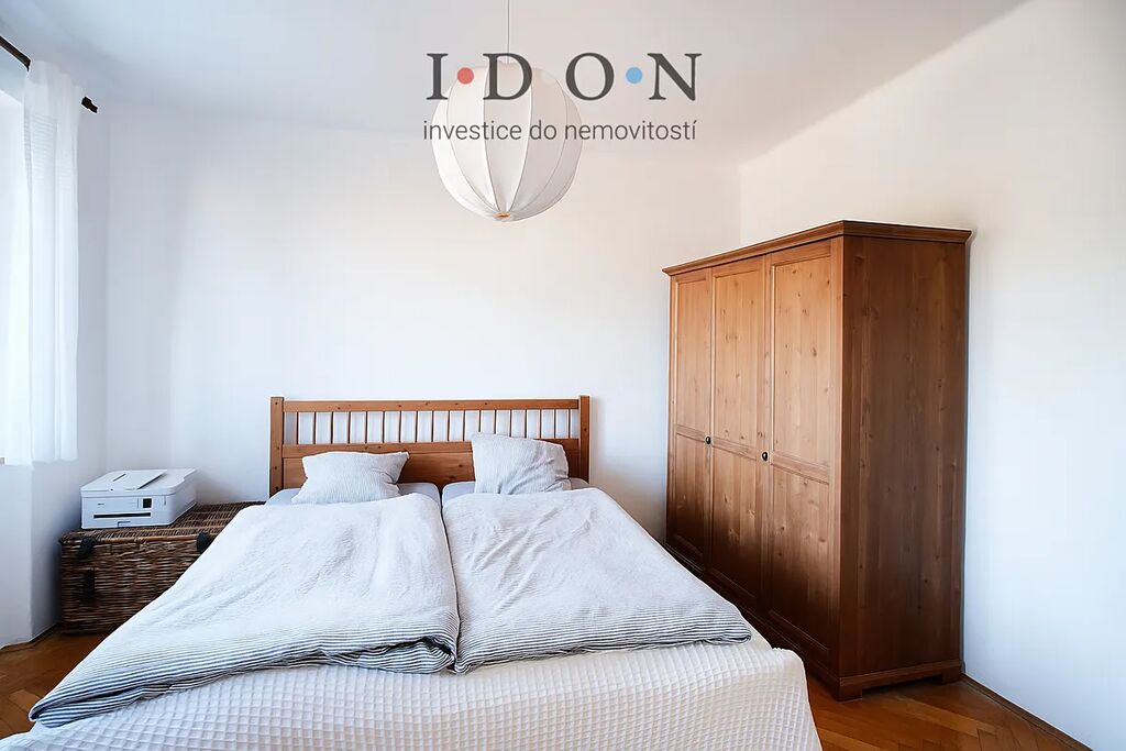 Ložnice je klidná, orientovaná mimo rušnou část, poskytuje soukromí i dostatek prostoru pro šatní skříně.