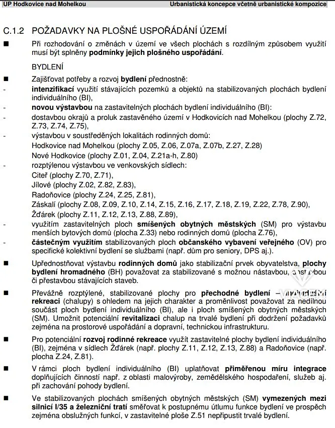 Koeficient zastavitelnosti stavbami je 20 %, tj. 82 m2. Min. koeficient zeleně je 60%.