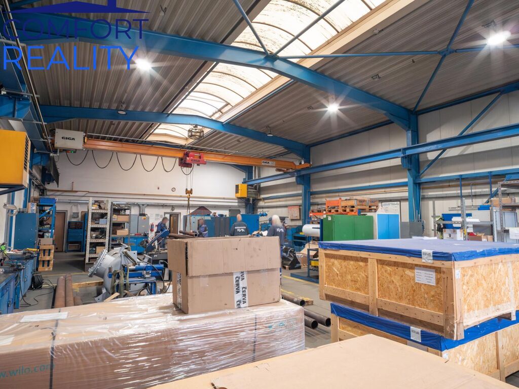 Výrobní a montážní haly, sklady materiálu, technologie, servisní zázemí tedy multifunkční provozní areál vhodný pro výrobní podnik, strojírenskou činnost či skladování.