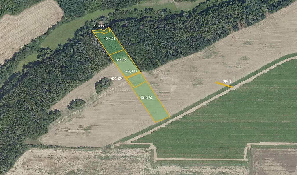 Umístěním se jedná o ornou půdu s navazujícím lesem. Obdělávaná plocha leží v rovině Lesem protéká potok, který tvoří přirozenou hranici. Celková výměra je 19 882 z toho je k prodeji je 19 741 m2. Většinu výměry tvoří lesní pozemky (11 277 m2), dále pak orná půda (7 918 m2) a zbytek ostatní plocha (546 m2).