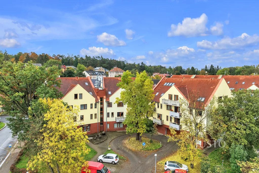 Okolí nabízí veškerou občanskou vybavenost. V obci najdete školku i školu, potraviny přímo v domě, a jen pár kroků od vchodu je zastávka MHD s rychlým spojením na metro Skalka. Za tři minuty pěší chůze se dostanete do kouzelného parku „Panská zahrada“, kde děti zabaví originální hřiště, bludiště i amfiteátr, a Vy si můžete užít klidné odpoledne v přírodě. Blízké okolí nabízí další sportovní a kulturní vyžití – v dosahu je například Krtkův svět, Galerie Golf Hostivař nebo další dětská herna Koala Café.