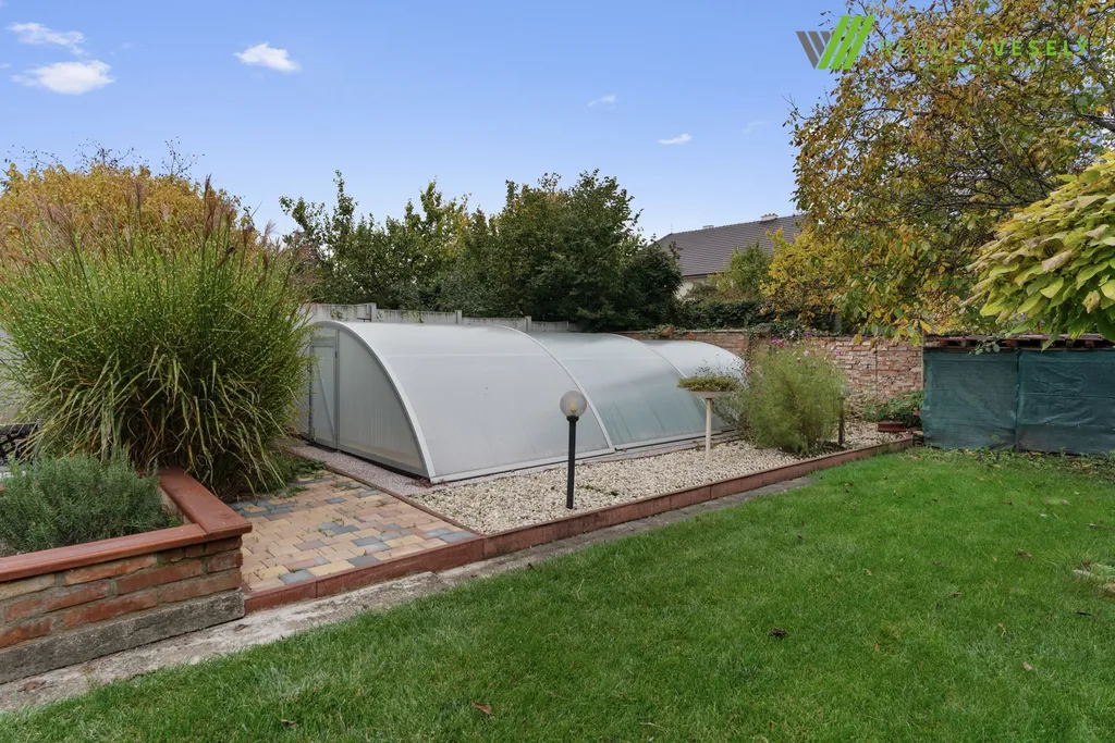 Na velké a udržované zahradě je venkovní zapuštěný bazén o rozměrech 5,5x3,5x1,2 m s filtrací a zastřešením.