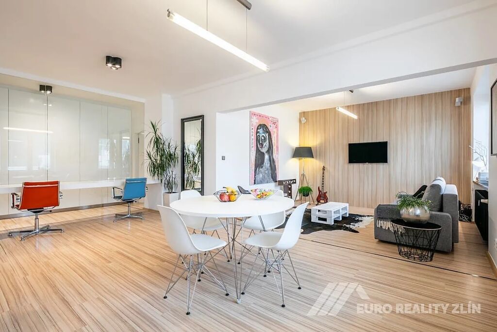 Nabízíme exkluzivní pronájem prostorného a nadstandardního bytu 2+kk o velikosti 73 m², který se nachází v posledním patře bytového domu přímo v centru Zlína, na ulici Sadová.