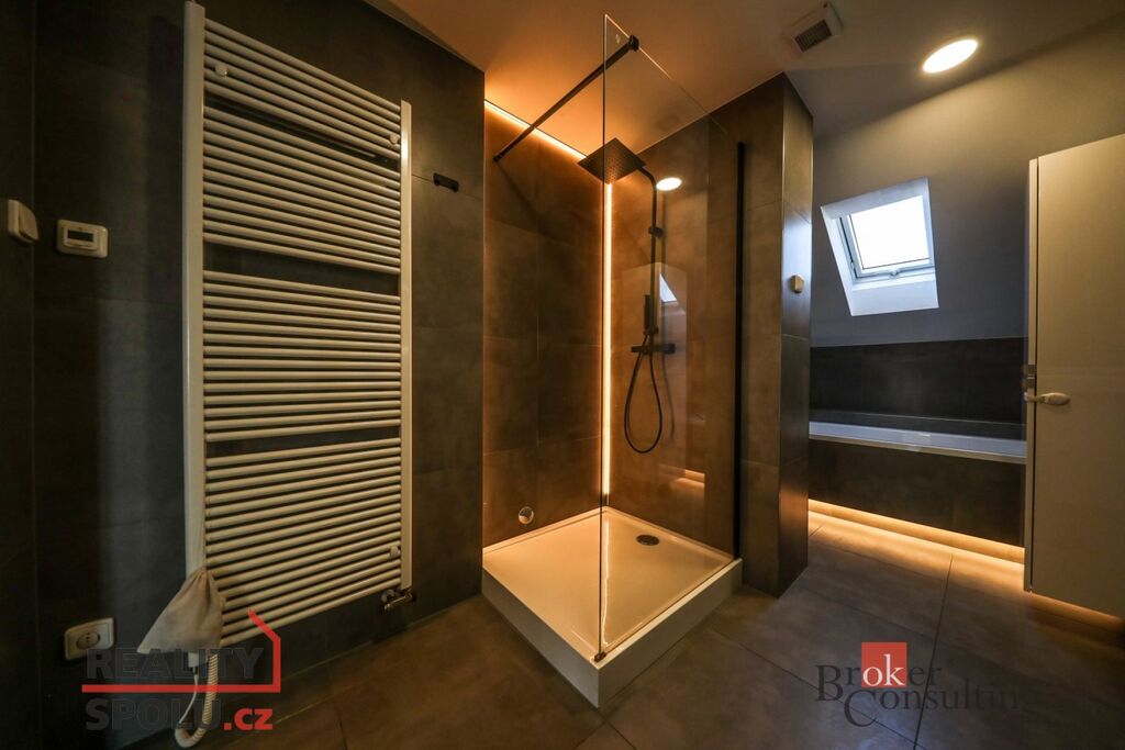 Byt se nachází v udržovaném bytovém domě se zahradou o 5 bytových jednotkách a 1 nebytového prostoru. Dům má dvě nadzemní podlaží a podkroví, kde se tento byt rozprostírá.
