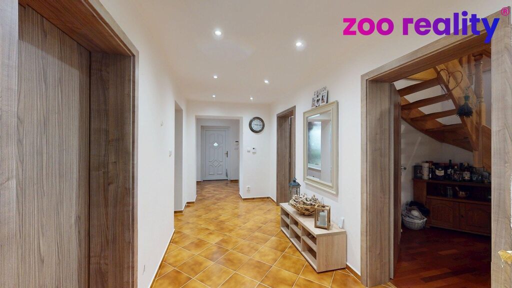 Nachází se zde prostorná chodba ze které je vstup do kuchyně propojenou s obývacím pokojem ze kterého je vstup na terasu, dále se v přízemí domu nachází koupelna se sprchovým koutem, umyvadlem a toaletou, technická místnost kde je i bojler na ohřev vody, z chodby je vstup také do garáže pro dvě vozidla. V patře domu se nachází koupelna s vanou, umyvadlem a toaletou, dětský pokoj s šatnou, ložnice, pokoj pro hosty a oddělená relaxační část ve které se nachází koupelna se sprchovým koutem, umyvadlem a toaletou, šatna a posilovna ze které je vstup na terasu. Dále zde najdeme i půdní prostor.