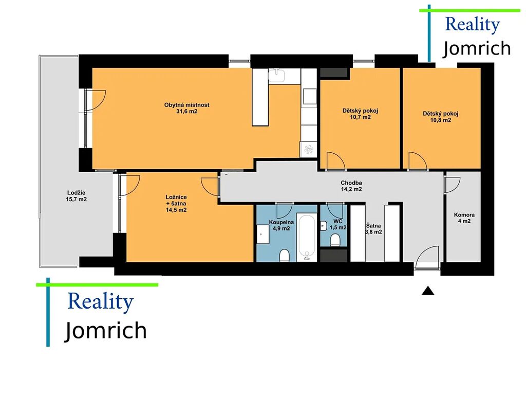 Pronájem nového bytu 4+kk s terasou, klimatizací a krytým parkováním, celková plocha ca 112 m2, v Turnově.